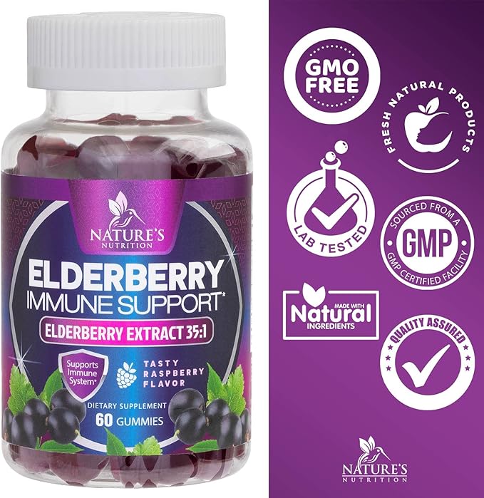 - Elderberry Immune Support Gummies for Adults & Kids: Sambucus black elderberry gummy vitamin supplement from natures nutrition for women men kid system zinc c best extract drops capsules tablets powder pills elder elberry edelberry eldeberry elderberries elderbery eldreberry juice berry sistema sambuca defense vegan vegetarian