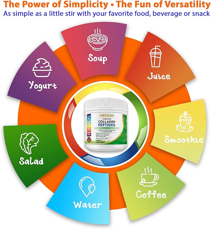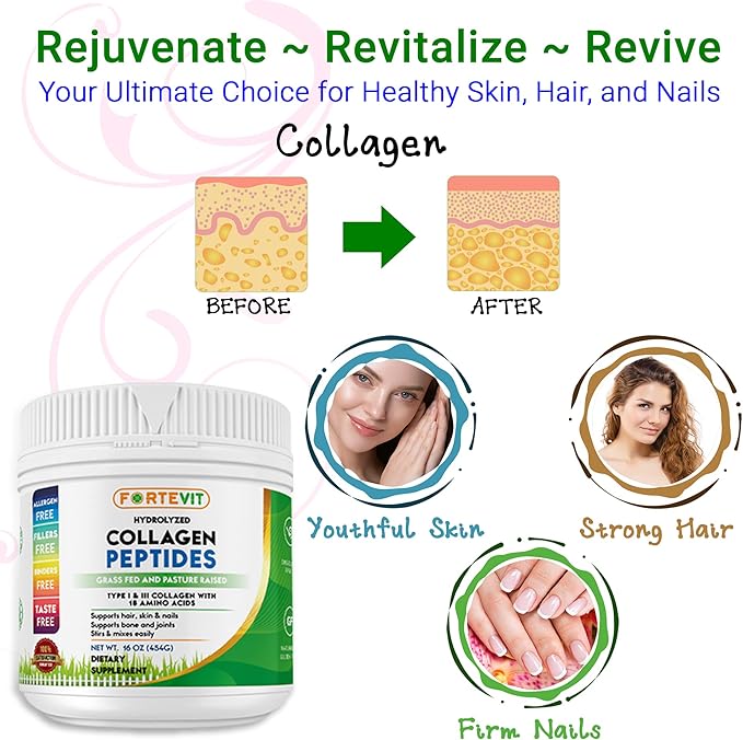 - ✅ {HEALTH & BEAUTY BENEFITS}: Fortevit’s Collagen promotes the health of your skin, hair, nails, bone, joints, ligaments, and tendons. Results in restoring skin elasticity and brightness while enhancing hair vitality, replenishing nail firmness as well and improving joint mobility