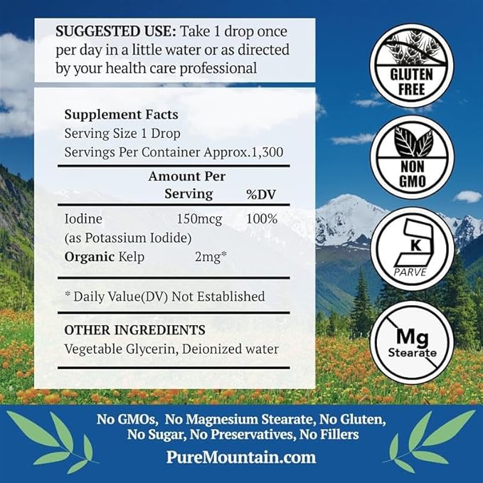 - Pure & Natural – Vegan, Kosher, and gluten-free drops filled with fresh iodine.