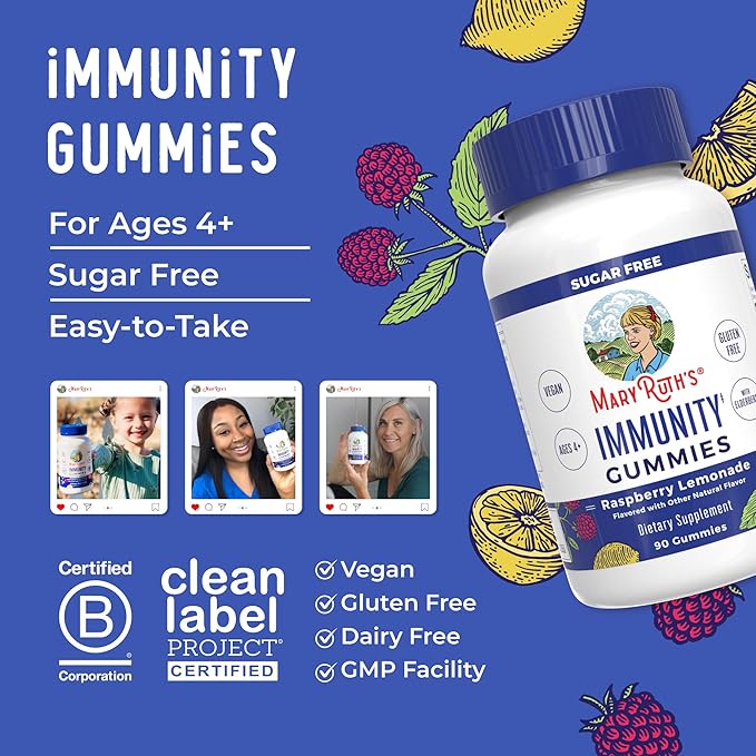 - For Most Lifestyles: MaryRuth's Immune Support Gummies are Non-GMO, Vegan, No Gelatin, Pectin Based, Dairy Free, Gluten Free, Nut Free, Soy Free, Sugar Free, Made in a GMP Facility. Clean Label Project Certified. B Corp Certified.