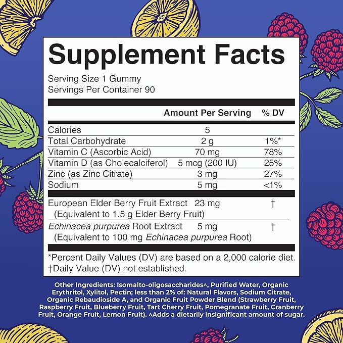 - Immunity With Zinc Supplements: With the combination of herbs, an essential mineral, and essential vitamins, these gummies provide a powerful blend of ingredients. Elderberries, the fruit of the Sambucus tree, have been used for generations to support the immune system.