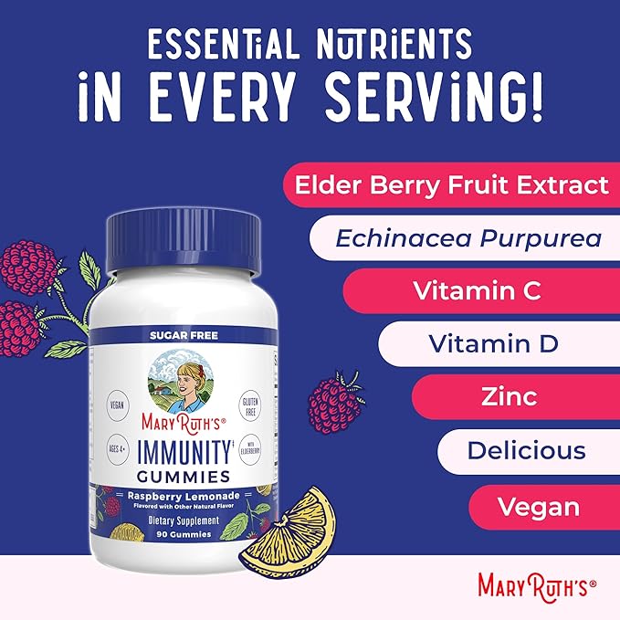 - Vitamin C, D, Zinc, Echinacea & Elderberry Gummies: MaryRuth’s Immunity Gummies are formulated with ingredients to give you the immune support you need! This powerful blend of Zinc, Elderberry, Vitamin C, Vitamin D, and Echinacea offers additional benefits including skin and bone health.