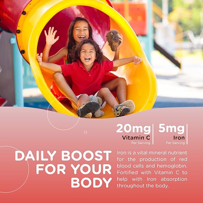 - DELICIOUS IRON GUMMIES - Each chewy fruit flavored gummy contains 5mg of Iron and Vitamin C to support better absorption and easier digestion. Supplement your iron easily with one daily gummy taken with food.