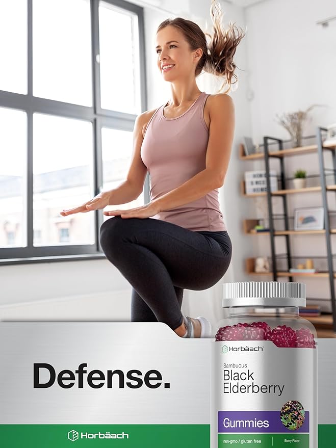 Horbaach Black Elderberry Gummies | 120 Count | Sambucus Extract | with Zinc and Vitamin C | Berry Flavor | Vegan, Non-GMO, and Gluten Free Supplement for Adults