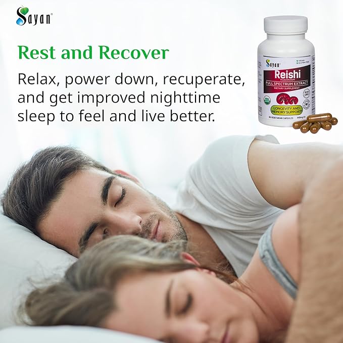 Sayan Reishi Mushroom Extract 90 Capsules/440mg Each – Longevity, Vitality, Wellness & Immune Support Supplement – USDA Organic & Vegan – Non-GMO, No Fillers, or Additives – Always Pure and Potent