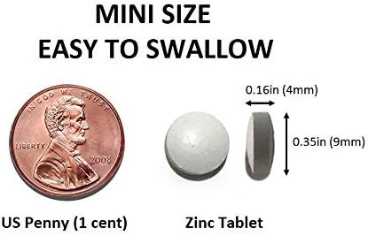 - Mini, Easy to Swallow Size - Specifically designed for easier consumption and for those who do not like large tablets. Each Zinc tablet is tiny and only measures 0.35inches (9mm) wide and 0.16 inches (4mm) thick.