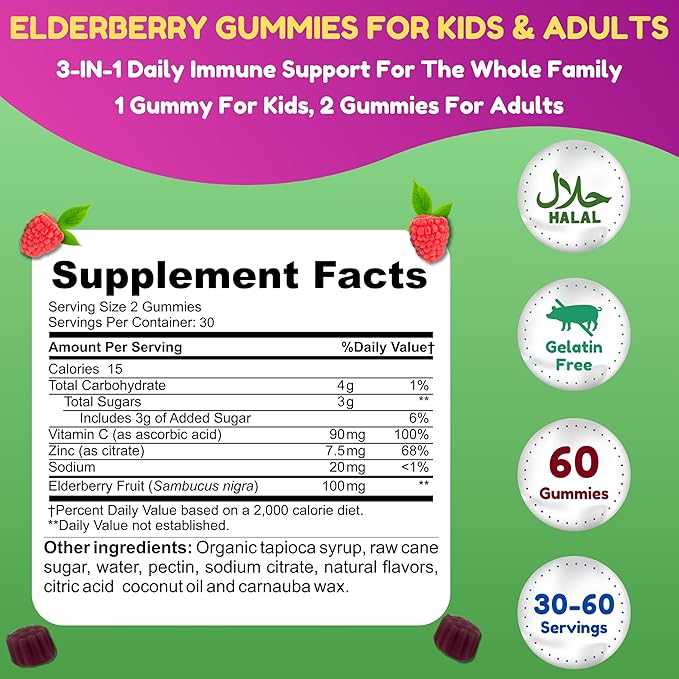 - NATURAL DEFENSE: These Sambucus Elderberry Gummies for Kids and Adults are not only An Immune System Booster but they also Promote Heart Health. Black Sambacus Elderberries with Zinc Supplement and Vitamin C is a Great Combination For Kids and Adults Immune Support. Additionally, Elderberries are also considered a Natural Defense Because of Rich Antioxidants in Them.