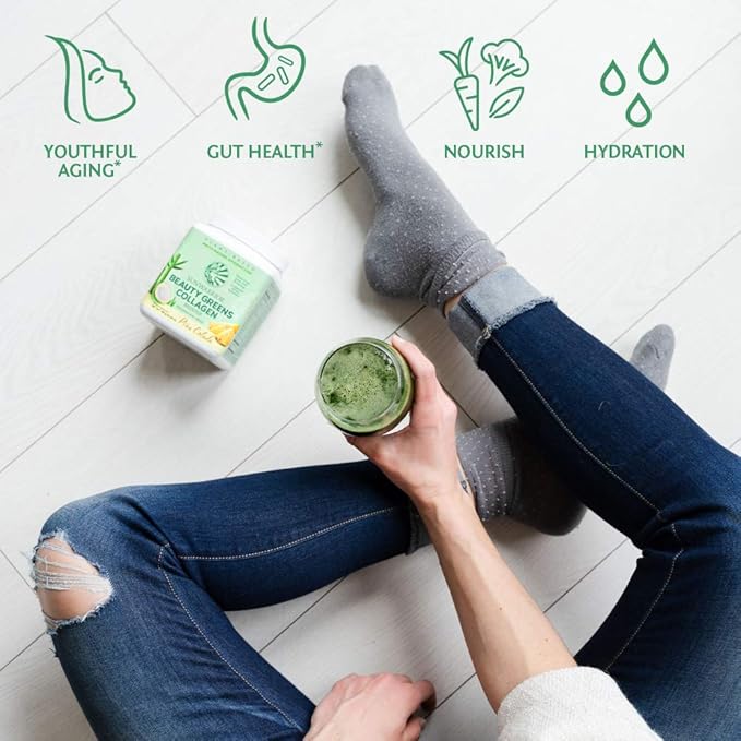 - Wheatgrass juice, kale, moringa, and the equivalent of 1 vegetable serving provide the answer to aging brought on by oxidative stress. Sunwarrior's Beauty Greens Collagen Booster with Biotin and Hyaluronic Acid will help you alkalize, hydrate, and strengthen your cells from the inside out while boosting your body's inherent collagen production. Beautiful is more than looking great! Beautiful is feeling great!
