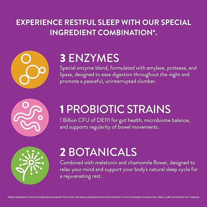 • Product Benefits : Digestive Enzymes and Probiotics Supplement. Promotes Better Digestion. Natural Sleep and Rest Aid