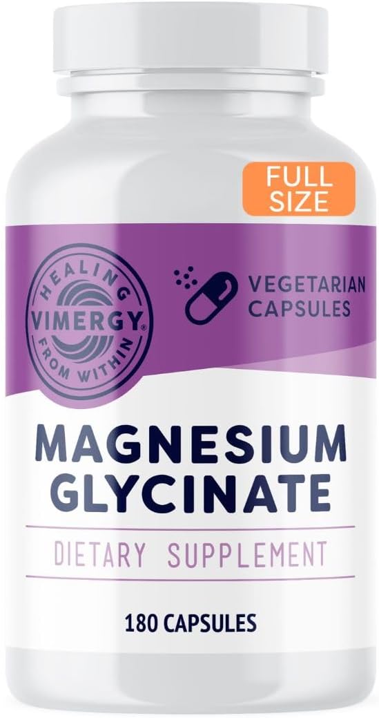 Vimergy Magnesium Glycinate – Stress Support – Chelated to Avoid Tummy Upset*– Promotes Heart Health & Energy*– Kosher, Vegan Gluten-Free – 180 Caps