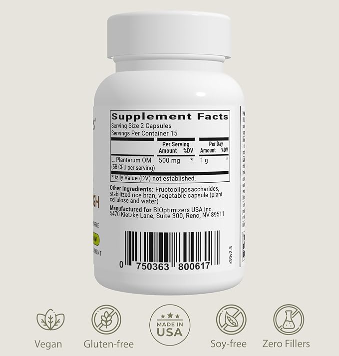 BIOptimizers Probiotic Breakthrough, Proteolytic Prebiotics & Probiotics Supplement – Lactobacillus Plantarum OM for Immune, Bloating & Gut Relief Support, 30 Vegan Capsules