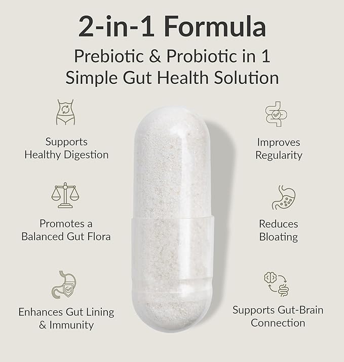 - Supports Digestion, Immunity & Gut-Brain Health: Tackles gas, bloating, and irregularity by restoring gut balance, strengthening the gut barrier, and enhancing gut-brain communication for improved mood, energy, and mental clarity.
