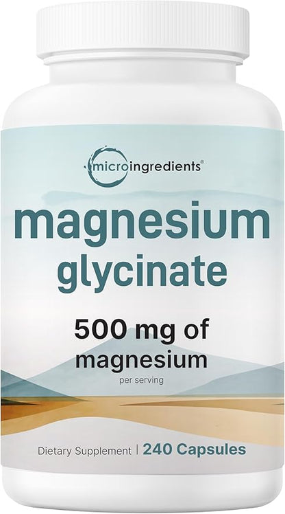- 240 capsules per pouch that delivers an extra strength 500mg dose of pure magnesium glycinate. Every 3 capsule serving size provides an 80 day supply and promotes benefits for bones and heart, as well as supporting calmness.
