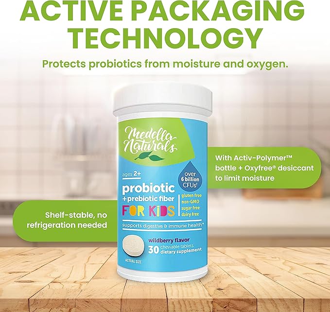 - TASTES GREAT & CHEWABLE – Probiotic supplement for kids aged 2 years old and above. Your kids will love its easy-to-chew tablets with delicious natural wild berry flavor. These tablets have a shelf life of 2 years with no refrigeration needed.