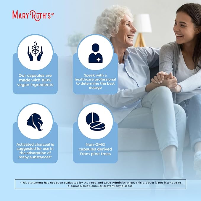 - For Most Lifestyles: MaryRuth's Activated Charcoal Capsules are Vegan, Non-GMO Project Verified, Dairy Free, Nut Free, Gluten Free, Soy Free, Sugar Free, Shelf Stable. Made in a GMP Facility. Clean Label Project Certified. B Corp Certified.