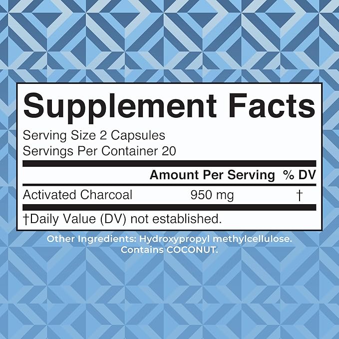 - Take As Needed: Adults take 1-2 capsules by mouth with water. This product is intended for adults only and should not be taken on a regular basis. Take at least 2 hours before or after any medications or dietary supplements as activated charcoal can impact their absorption. Do not exceed the recommended dose.