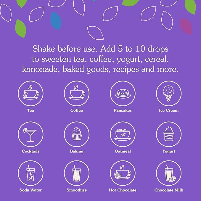 - Enjoy simple, high-quality ingredients: natural stevia extract, 20% pure grain alcohol, and vegetable glycerin; Sugar-free, calorie-free, and carbohydrate-free
