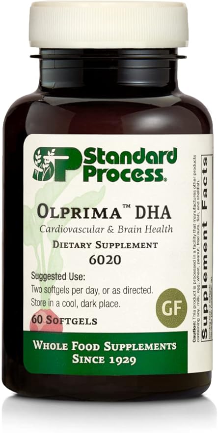 Standard Process Inc. Olprima DHA - Whole Food Cognitive Health, Brain Health and Heart Health, Astaxanthin, DPA and DHA with Omega 3 Tuna Fish Oil and Rosemary - Gluten Free - 60 Softgels