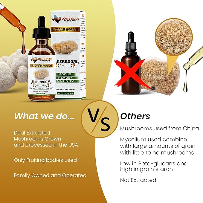 - 🧠 Enhances Cognitive Clarity, Concentration, and Memory - Lions Mane mushrooms harbor an extraordinary component known as triterpenoids, known for their ability to stimulate nerve growth factor in the brain. This compound is alcohol soluable so unless an alcohol extraction is done as in this case, you will not absorb this beneficial compound into your body. This has been demonstrated to be particularly beneficial for individuals facing challenges with memory and cognitive abilities, making it an exceptional nootropic choice