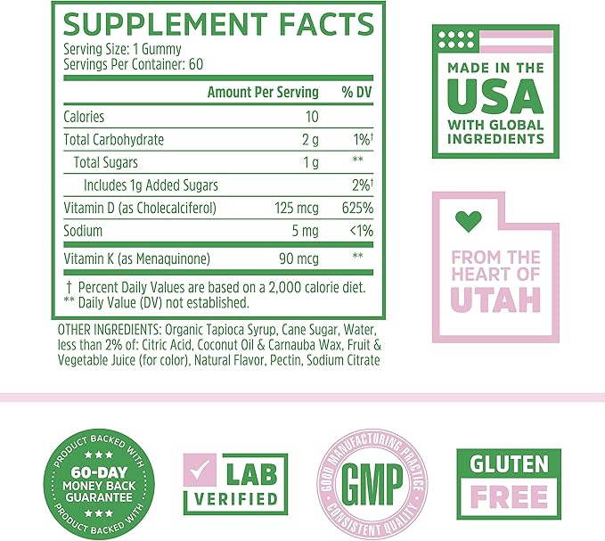 - Tasty Strawberry Flavor. Our K2+D3 Gummies come in a delicious, all natural strawberry flavor. They're colored and flavored with natural fruits and vegetables so you can rest easy knowing that what you're getting is all natural