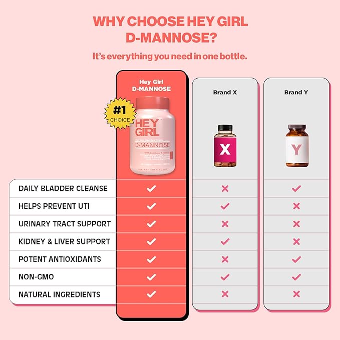 - UTI Life Sucks - Tired of all the trips to the bathroom, sudden need to pee, that sting, and of course that constant worry about when the next UTI will come? That's why we created Hey Girl Nutrition D-mannose just for you. It's a unique, all-natural blend of key ingredients that are known for cleansing your urinary tract and addressing discomfort. Girl, we want you to stay UTI be gone! Regain your peace of mind with D-mannose