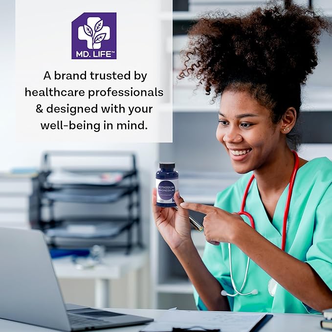 - OPTIMIZE YOUR PERFORMANCE: MD. Life's Potassium Magnesium Supplement is formulated with the intention of potentially supporting your nervous system and muscle function. It's designed around potassium, an essential mineral and electrolyte known for its roles in the human body such as water balance and blood pressure regulation.
