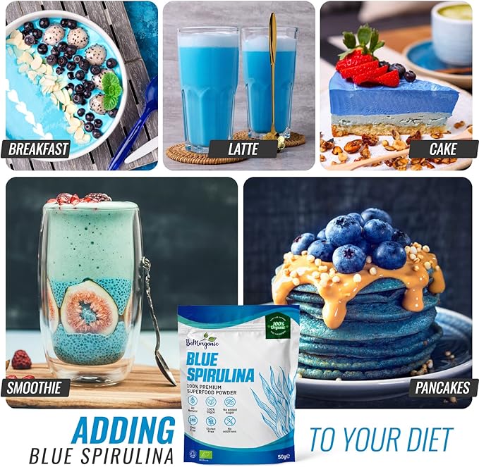 - β πππ¦π¬ π§π’ π¨π¦π: All you have to do to enjoy the rich blue pigment and great nutritional value of this spirulina superfood is to sprinkle a dash over your smoothie bowl or in the pancake mix, latte, juice, energy bites, or ice cream. It will instantly bring more color to your plate without affecting the taste.