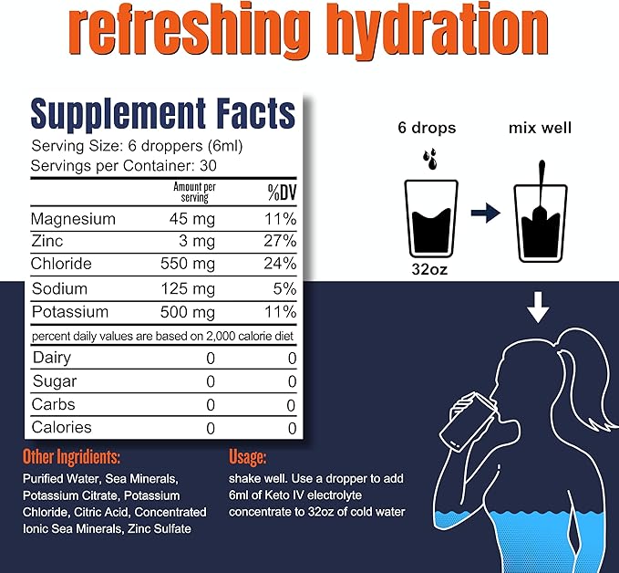 - KETO FRIENDLY ELECTROLYTE SUPPLEMENT – Support energy and help beat keto flu with our potassium rich electrolyte concentrate with no flavors or stevia added. Made with electrolytes and ionic sea minerals. Our high potassium electrolyte concentrate supplement is designed to help with hydration, increase cellular energy, eliminate cramps, and may help beat the Keto flu. Specifically formulated for keto and intermittent fasting.