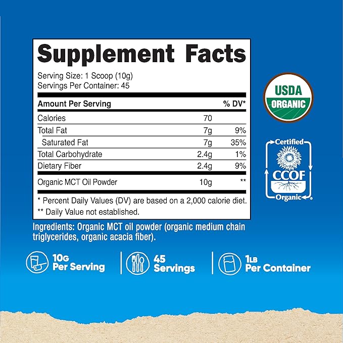 - Serving Size: Just 1 Scoop (Included) - 1.3Tbsp - 10 Grams of MCT Oil Powder In Each Scoop