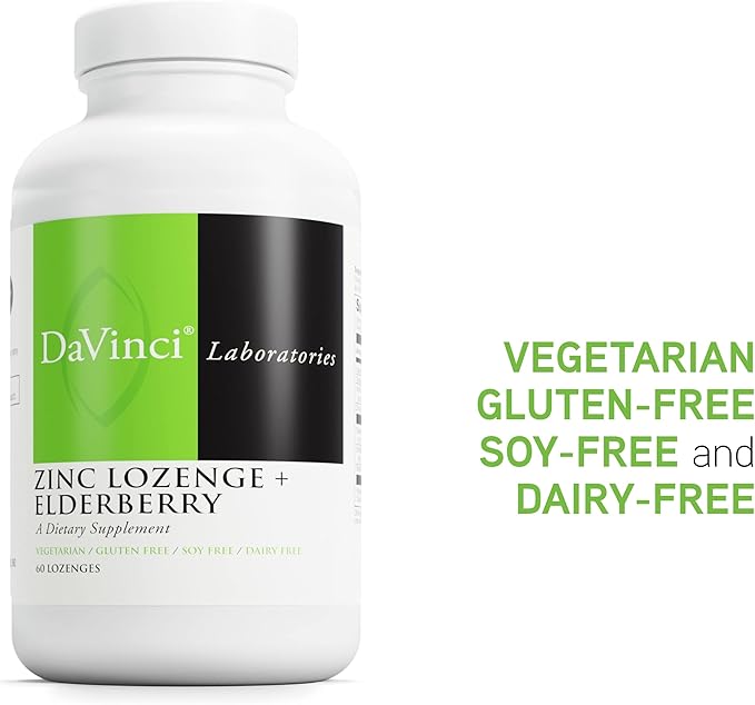 DAVINCI Labs Zinc Lozenge + Elderberry - Supplement to Support Immune System, Healthy Lungs & Throat Tissues* - with Vitamin D3, Zinc, Elderberry & More - Lemon Flavor - 60 Lozenges