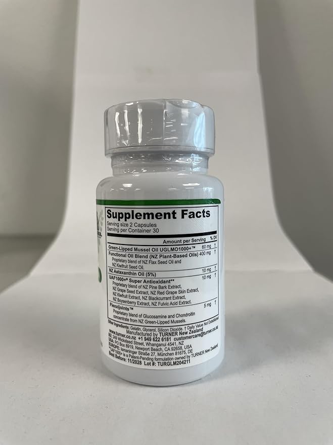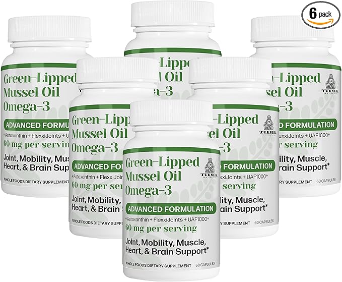 TURNER New Zealand Green Lipped Mussel Oil, Four Essential Omega-3s for Joint Comfort & Mobility Plus UAF1000+ Super Antioxidant, Astaxanthin, 53 X More Effective, 6 Bottles, 360 Softgels