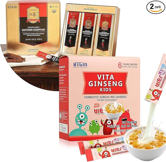 Saponin Hanppuri Immune and Stamina Boost + VITA Ginseng Kids Immune Support and Memory Function for Children Premium Bundle