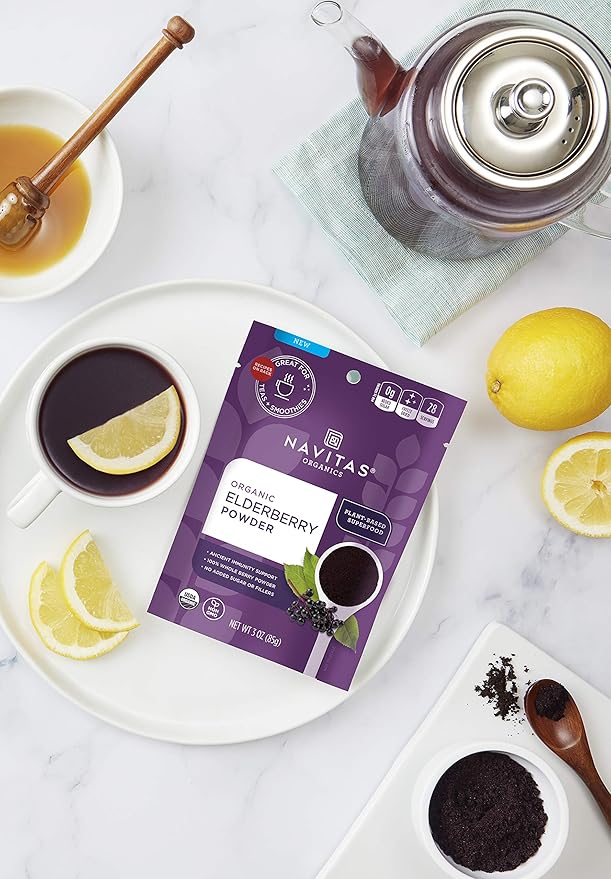 Navitas Organics Elderberry Powder, 3oz Bag, 28 Servings — Organic, Non-GMO, 100% Whole Elderberry Powder for Immune Support