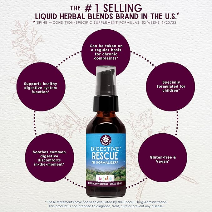 - ORGANIC INGREDIENTS: Our staff of highly-trained certified herbalists use only quality-tested, non-GMO ingredients to produce our signature small-batch formulations that support our bodies in the way nature intended. Made with organic peppermint leaf, organic catnip aerials, organic ginger root, and organic fennel seed. Digestive Rescue GI Gastrointestinal Normalizer for Children support supplement is gluten-free and vegan.