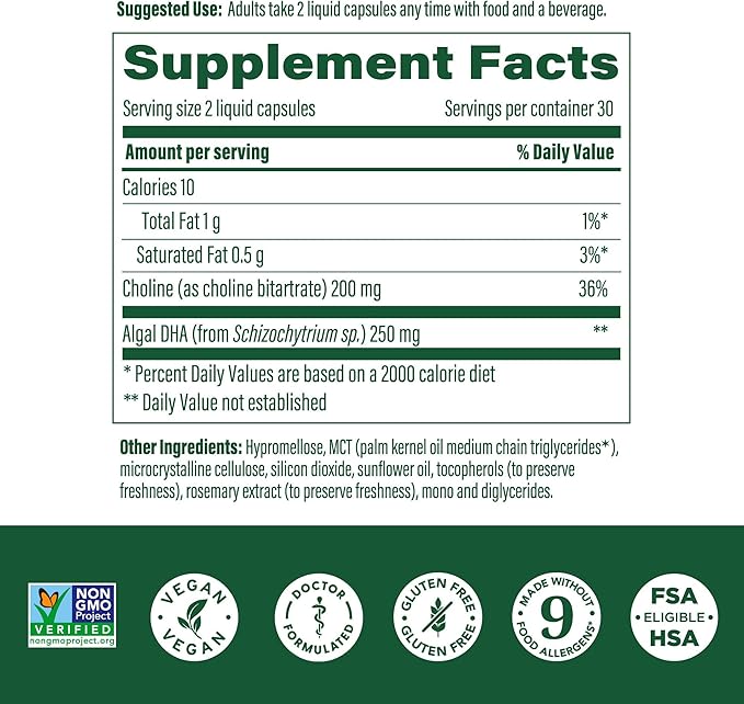 • INNOVATIVE NUTRIENT DELIVERY: Liquid DHA supplements with slow-release choline beadlets in a vegetable capsule to deliver nutrients over a sustained period of time; Citrus Scent Pak in every bottle