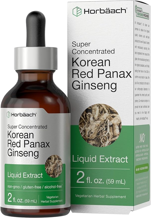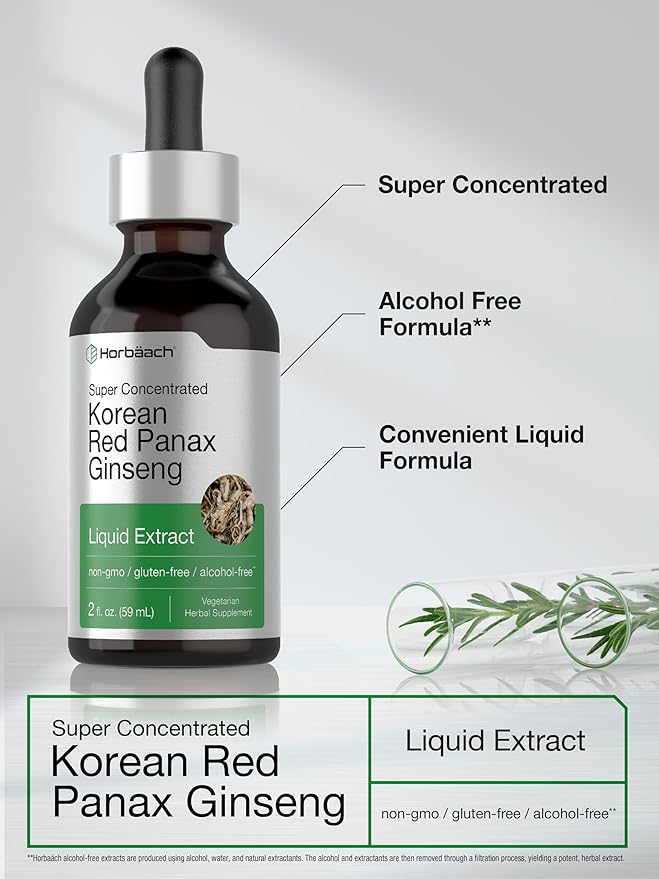 Horbäach Korean Red Panax Ginseng Liquid Extract | 2 Fl Oz | Vegetarian & Alcohol Free Supplement for Men and Women | Non-GMO, Gluten Free