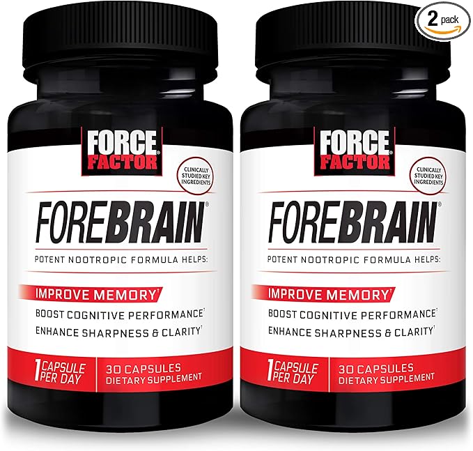 FORCE FACTOR Forebrain, 2-Pack, Nootropic Brain Supplement to Improve Memory, Boost Focus, Increase Mental Energy, and Support Brain Health with Caffeine, Bacopa, and Huperzine A, 60 Capsules