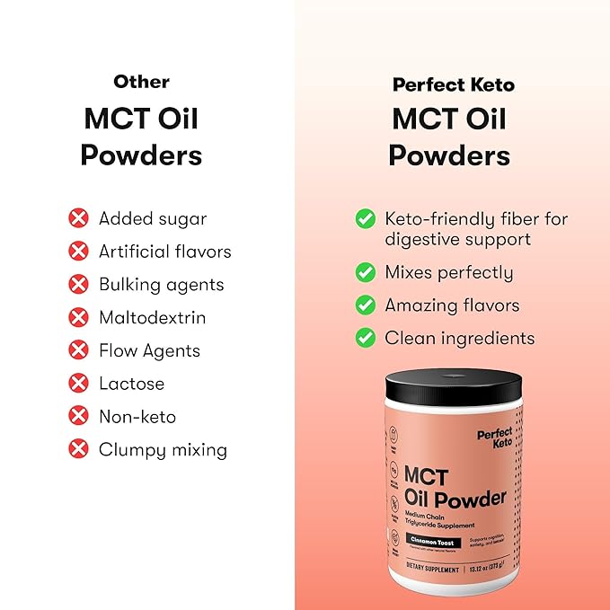 Perfect Keto 7g MCT Oil Powder, Medium Chain Triglycerides Supplement, Non Dairy Coffee Creamer for Keto Diet, Ketogenic MCT Oil Mix for Coffee, Smoothie, Protein Shakes, Cinnamon Toast, 30 Servings