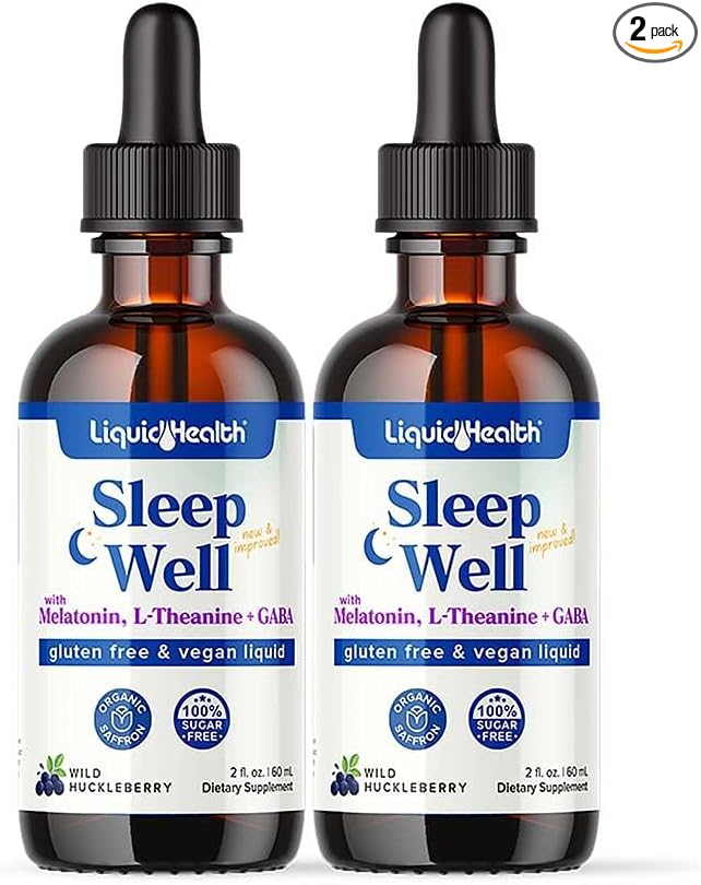 - SAY HELLO TO MORE RESTFUL, QUALITY SLEEP: Liquid Health's USA Made Sleep Well Drops are formulated with pure high-quality Melatonin, Vitamin B6, and our Relaxation Calming L-Theanine Blend to to help you fall asleep faster, and stay asleep longer. This natural herbal sleep aid supplement helps promote relaxation to improve mood, restore natural melatonin levels, and support healthy sleep patterns.