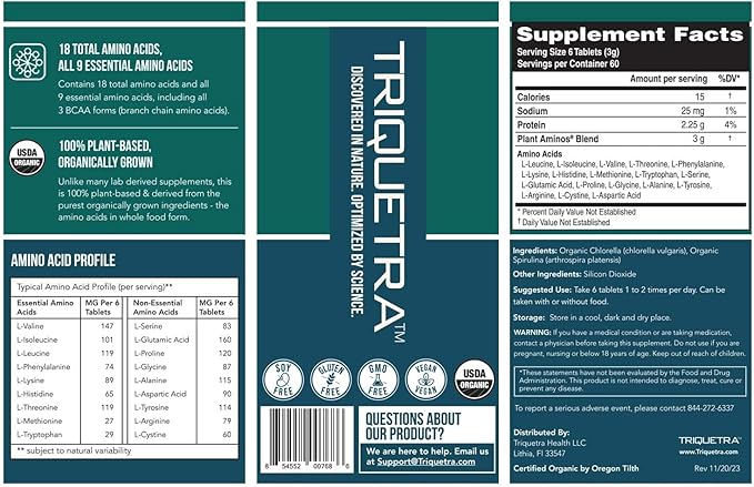 - USDA Organic Certified, Vegan & Raw Form: All Triquetra Health products adhere to the highest purity and quality standards. Plant Aminos has been certified organic, vegan, and exceeds all raw foods standards. It is tested for over 130+ toxins & contaminants and is produced in a GMP certified facility.