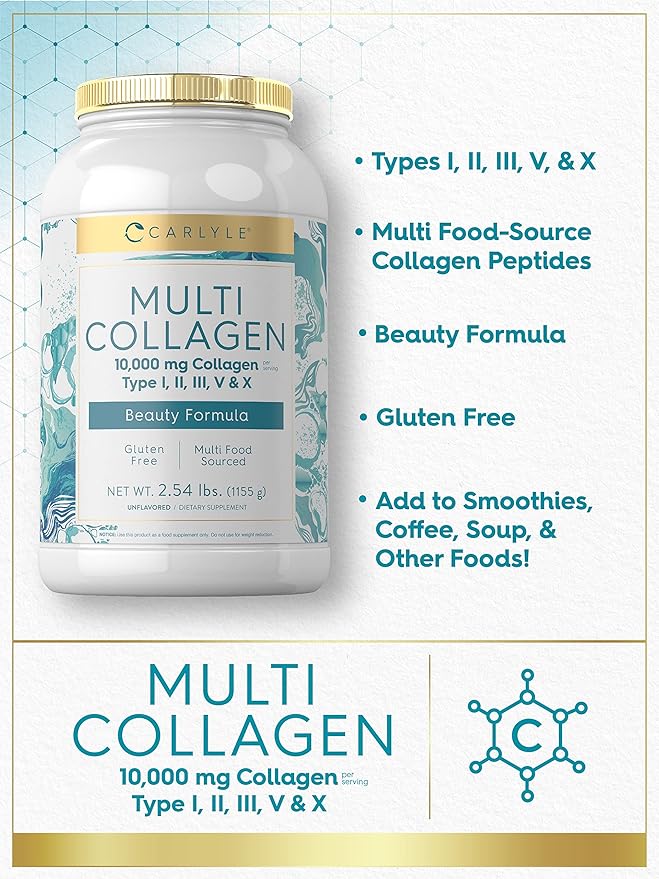 Carlyle Multi Collagen Peptides Powder 40 oz | 10000 mg | Type I, II, III, V & X | Collagen Peptides Supplement with Protein | Multi Food Sourced Collagen | Gluten Free