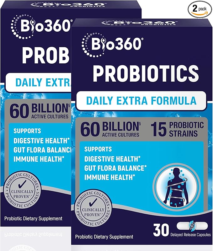 - IMMUNITY SUPPORT: Bio360 Probiotic offers essential support for your immune system, featuring clinically proven strains like Lactobacillus salivarius. A powerful probiotic like this helps promote your body's natural defenses, providing a strong barrier against harmful pathogens and promoting overall health.