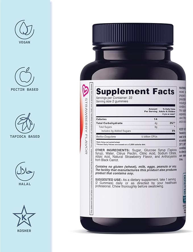 - 🍓 INCLUDES: 5 billion CFUs (Bacillus Coagulans) in every serving. Whether you’re looking for probiotics for men, probiotics for women gummies, or kids probiotic digestive support, LIVS probiotic gummy offering is perfect for the entire family.