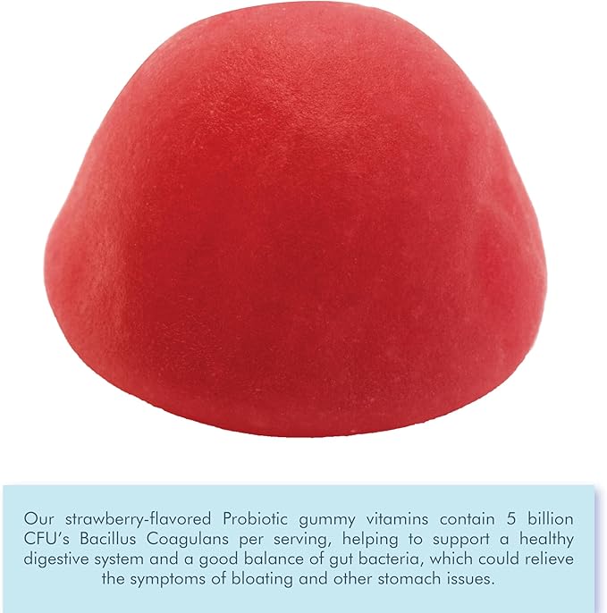 Probiotic Gummies for Women and Men | 5 Billion CFUS, Gummy Vitamin for Digestive Gut Health, No Artificial Flavors, Strawberry Flavor, 44 Count