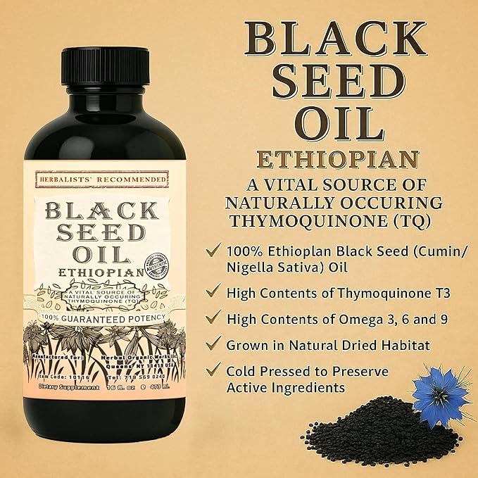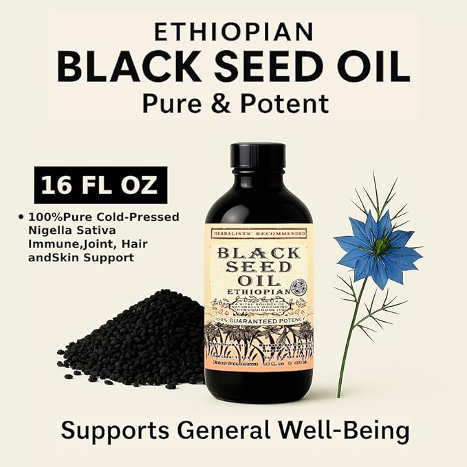 Ethiopian Black Seed Oil 16oz โ Extra Strength 3x Thymoquinone โ 100% Pure Cold-Pressed Nigella Sativa โ Immune, Joint, Hair and Skin Support