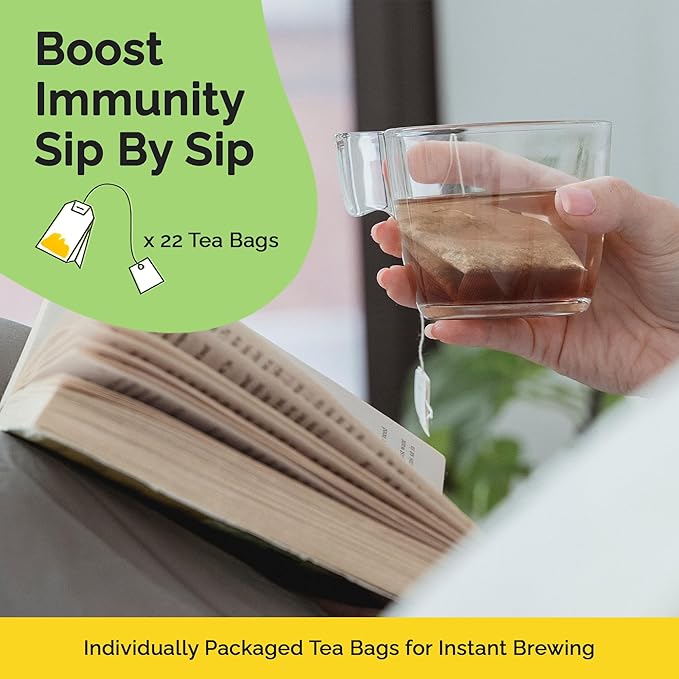 - 88 Tea Bags of Freshness: Each pack contains individually wrapped hot tea bags, packaged in airtight foil envelopes to preserve the taste, aroma, and freshness. The tea herbal formulation of zinc, turmeric, ginger, and lemongrass can help provide optimal goodness for daily life.