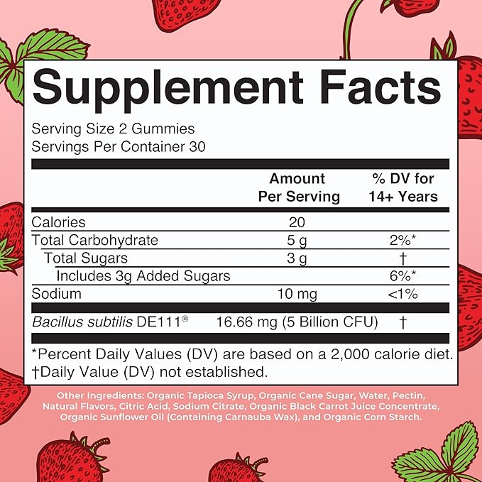- Easy-to-take: Enjoy the taste and wellness with every probiotic gummy; our strawberry-flavored treats elevate your daily routine, making it easy to support digestive health in a delicious strawberry flavor! These probiotics for women and men seeking to support gut comfort and probiotics for digestive health.