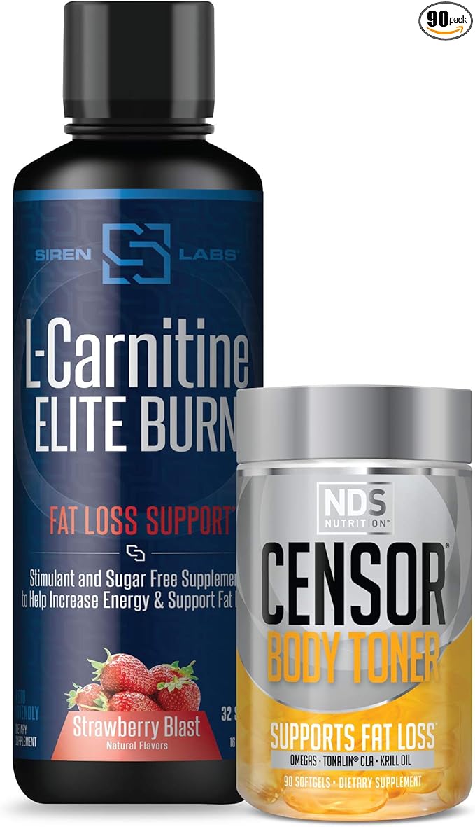Censor NDS Nutrition Fat Loss-Body Toner with CLA (90 Softgels) & Siren Labs L-Carnitine Elite Burn Fat Loss Support Strawberry Blast 3000 mg (32 Servings)