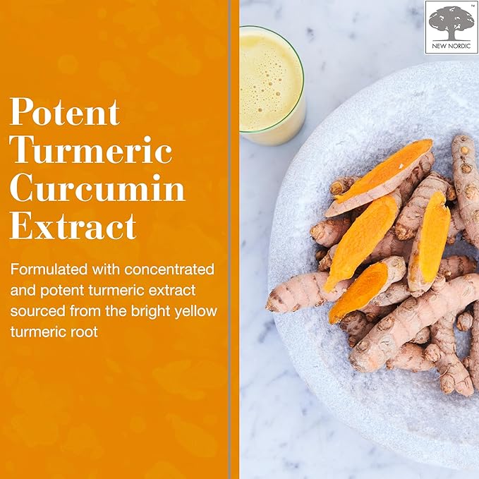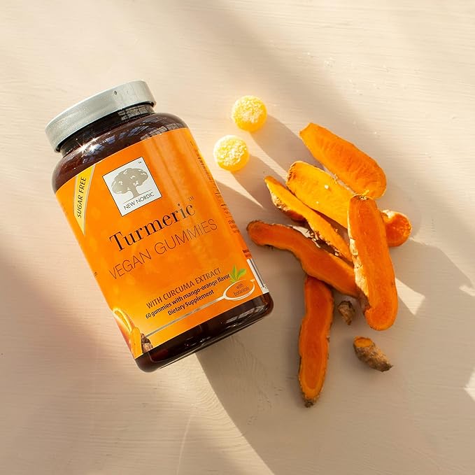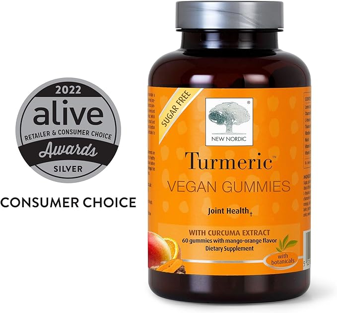 NEW NORDIC Turmeric Curcumin Gummies, Sugar Free, 300 mg Turmeric Supplement for Men and Women, Supports Normally Functioning Joints, Knees, Shoulders, Mango Orange, 60 Count
