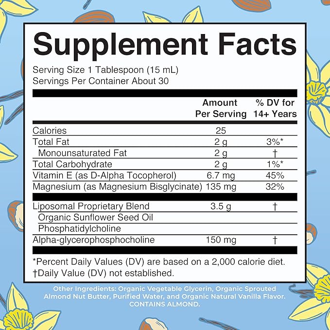- Magnesium Liposomal: Support your Magnesium status with this almond-vanilla flavored Magnesium Calm Liposomal! Magnesium, an essential mineral, is vital for many processes in the body and it’s estimated that almost half of U.S. adults do not intake the recommended amount of Magnesium.